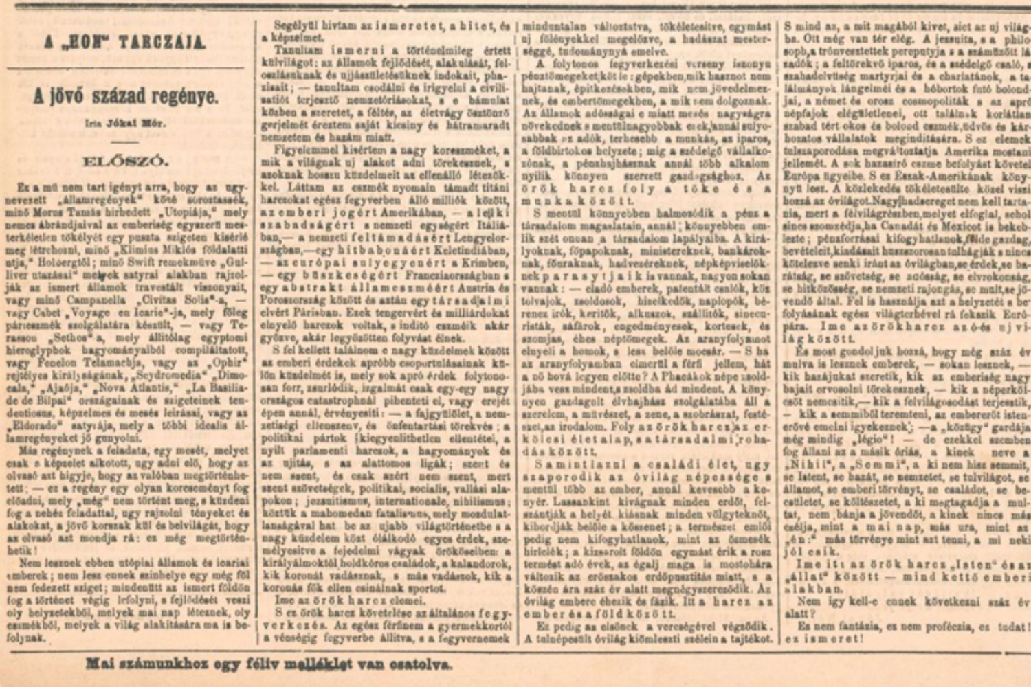A Hon 1872. november 3-i száma, amelyben A jövő század regényének előszavát először leközölték