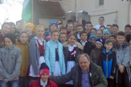 A Rákossi Lajos Általános Iskola pedagógusai, diákjai koszorúzással, illetve verses-zenés műsorral e...