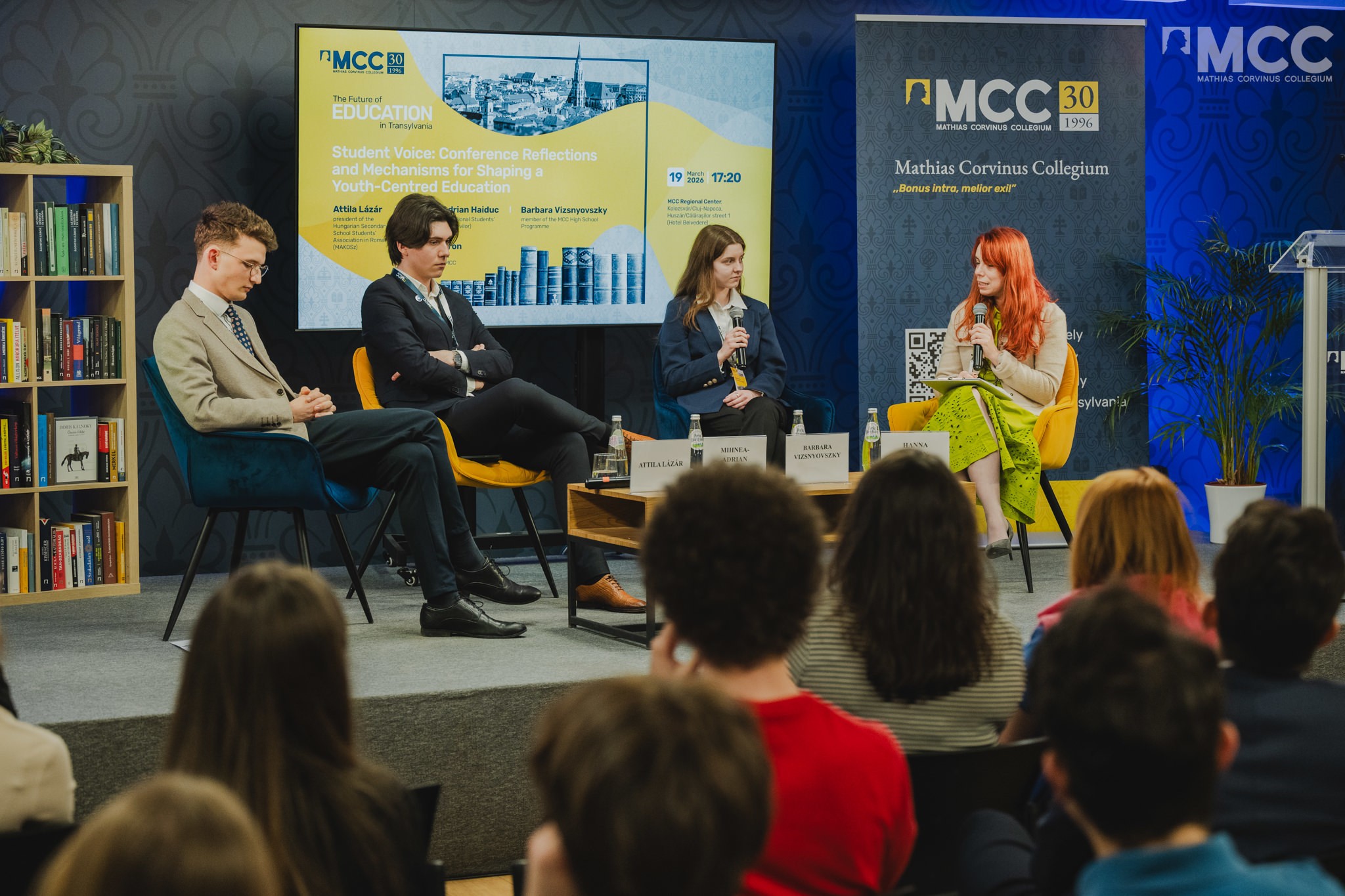 A panelt Ugron Hanna, az MCC-akadémiai ügyek koordinátora moderálta. Meghívott előadók voltak: Mihnea-Adrian Haiduc, az Országos Diáktanács (CNE) elnöke; Lázár Attila, a Romániai Magyar Középiskolások Szövetsége (MAKOSZ) elnöke; valamint Vizsnyovszky Barbara, az MCC Középiskolás Program diákja.