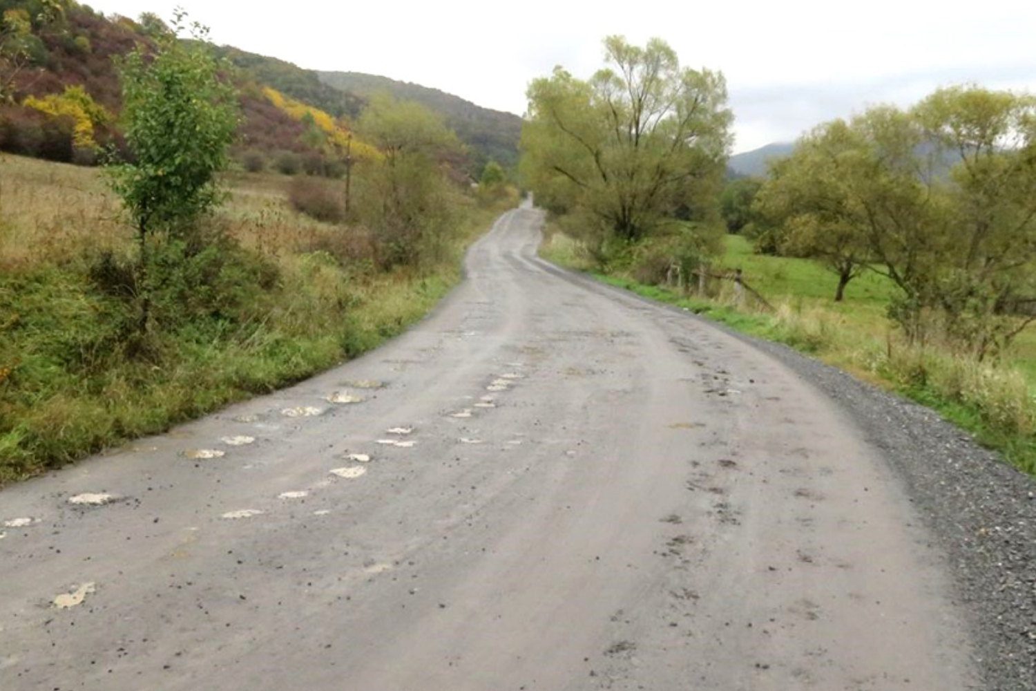 A nyár közepén (jaj nem rögtön tavasszal, dehogy!) nekifogtak, tömték-tömték a gödröket, egyiket a másik után, haladtak lassan, de biztosan előre, már a hodosi tetőt is elérték, el is hagyták, ezt igazolni is tudjuk én és a férjem is, hisz a nyáron elég gyakran jártunk ki szülőfalumba, Köszvényesre. Na, de nemcsak elérték, át is haladtak rajta, egészen a tető másik feléig. Ott viszont hirtelen megtorpantak, nem tudni, elfogyott az anyag, talán a pénz, avagy a lendület... Lehet az is, hogy a lapátolók megunták a sok terepmunkát, az égető napot, jelentették, minden rendben. Még kísérletet sem tettek, hogy véka alá rejtsék a be nem avatottak előtt a kézzelfogható valóságot. Talán, mert ezek nem számok, amik könnyen elvesznek a papírokon, azok rubrikái tömkelegében... Jól ismerték a hagyományt, tudták, úgysem fogja még a kutya sem ellenőrizni, mit, mennyit, hogyan csináltak. Vagy ki tudja, talán így volt előirányozva feletteseik által, ötszáz méteren minden lyukat meg kell hagyni! Ezek fogják képezni jövőre az alapot, amire építeni lehet, mármint a jövő évi, de ha minden jól megy, még az ötéves tervet is. Hisz jövőre is munkát kell biztosítani az embereknek… Valaki a környékről úgy tudta, most fogtak hozzá a lyukak leltározásához. Rossz volna belegondolni is, ha netán hiányt fedeznének fel a lyukak számát illetően… Nem, ilyet nem tehettek, inkább meghagyták a hodosi tetőtől egész a Deményházát jelző tábláig mindahányat, jó sokat és jó mélyeket, hadd mondhassa az arra járó: „ezt az utat még megemlegetem!”